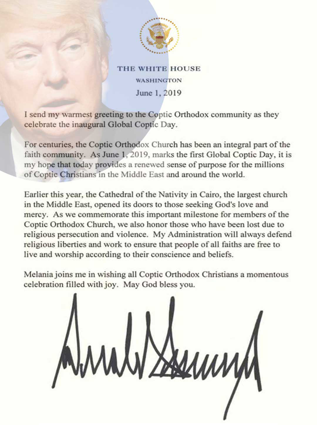 Ref: https://www.prnewswire.com/news-releases/president-donald-j-trump-issues-official-message-to-coptic-orthodox-christians-for-june-1st-global-coptic-day-300858199.html